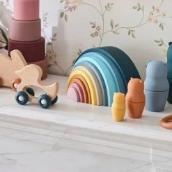 DĂ©co ou jouet de motricitĂ©, ce bel arc-en-ciel colorĂ© se compose de 10 niveaux en silicone que votre enfant s’amusera Ă empiler. On le retrouve partout ; le silicone est la nouvelle matière chouchou des parents ! Doux et souple, les petits peuvent le mâchouiller sans se blesser. Les pièces en silicone ne craignent pas l’eau et peuvent ĂŞtre placĂ©es sans problème dans le bain.Â