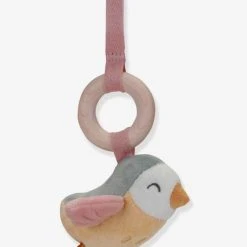 Explore les 3 jouets suspendus : le petit oiseau, le papillon et la fleur.