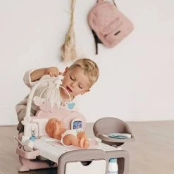 Avec la nurserie Cocoon Baby Nurse votre enfant pourra apprendre Ă prendre soin de son poupon comme une vĂ©ritable maman ou un vĂ©ritable papa ! Le produit est composĂ© d’un espace soin et nuit et d’un espace repas, votre petit pourra alors imiter tous vos faits et gestes ! La nurserie possède une table avec une chaise pivotantes, une table Ă langer/lit, un cadre photo personnalisable, un mobile mĂ©canique, et divers espaces de rangement.Â