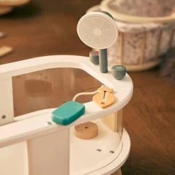 Plouf, c’est l’heure du bain ! Grâce Ă cette jolie baignoire en bois et plexiglas, les enfants vont pouvoir s’amuser Ă laver leur poupĂ©e. Des boutons “chaud”, “froid” Ă tourner, un pommeau de douche, un savon et un thermomètre poisson… tous les Ă©lĂ©ments sont rĂ©unis pour imiter avec beaucoup de rĂ©alitĂ© ce moment tant apprĂ©ciĂ© des enfants.Â