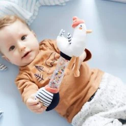 Sur son bâton de pluie, notre jolie mouette ne demande qu’â ĂŞtre secouĂ©e, retournĂ©e, mâchouillĂ©e, afin d’Ă©merveiller tous les sens de bĂ©bĂ© ! Lorsqu’il tournera le bâton, les billes de couleurs tomberont au doux son de la pluie.