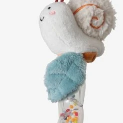 - En bas du bâton, escargot en velours avec carapace en volume matière teddy