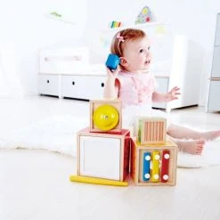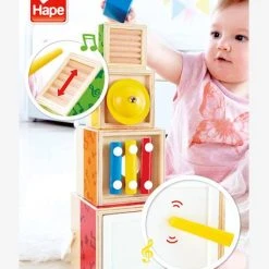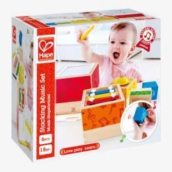 Véritable orchestre facile à transporter, les boîtes musicales gigognes vont permettre à votre enfant de jouer à la batterie, au xylophone, au maracas, au guiro et à la cymbale ! Empilables, elles ne prennent pas de place dans la chambre.