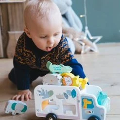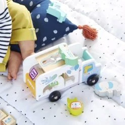 Tout mignon, ce camion d’encastrement en bois permettra aux petits de se concentrer et de dĂ©velopper leur coordination. ComposĂ© d’un camion et de 5 animaux, il promet de longs moments d’amusement Ă votre enfant !