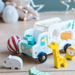 Tout mignon, ce camion d’encastrement en bois permettra aux petits de se concentrer et de dĂ©velopper leur coordination. ComposĂ© d’un camion et de 5 animaux, il promet de longs moments d’amusement Ă votre enfant !