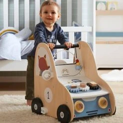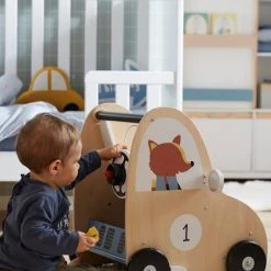 Au volant de son joli trotteur, votre enfant s’Ă©lancera pour la grande aventure de la marche ! Avec son système de freins, il est parfaitement sĂ©curisĂ© ! Vous pouvez laisser cavaler bĂ©bĂ© en toute sĂ©rĂ©nitĂ©. DotĂ© de multiples activitĂ©s, ce trotteur a tout pour plaire : un volant qui tourne avec un klaxon, des rĂ©troviseurs rĂ©tractables, un boulier , des engrenages… de quoi Ă©veiller les sens et dĂ©velopper la motricitĂ© en s’amusant ! Â