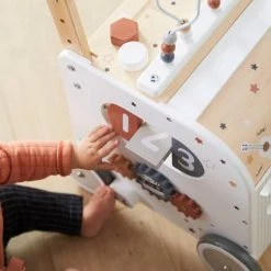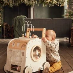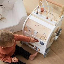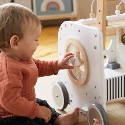 Chariot de marche cube d’activités avec freins en bois FSC®.