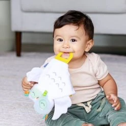 Ce joli coffret comprend un doudou chouette tout doux dotĂ© de petits pieds en plastique souple et d’un anneau en silicone Ă mordiller luminescent pour rĂ©conforter bĂ©bĂ© la nuit et de deux hochets de dentition multitexturĂ©s. Le hochet fleur permet Ă bĂ©bĂ© de soulager ses gencives en mordillant les pĂ©tales.