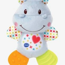 – d’un hippo en peluche tout doux avec diffĂ©rentes textures et des pattes en plastique souple pour apaiser les poussĂ©es dentaires de bĂ©bĂ©