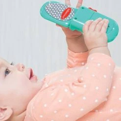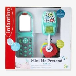 Bébé va adorer imiter papa et maman avec ses nouvelles clés et son téléphone portable. Ils émettent des sons et musiques amusantes qui vont stimuler sa curiosité. Le téléphone à clapet est doté d’un petit miroir pour jouer à faire des “selfies”, il est facilement préhensile pour les petites mains de bébé. Les clés électroniques ont 4 boutons lumineux qui émettent des sons de voiture, un personnage qui fait un bruit de papier froissé quand on le touche et des clés colorées à mordiller.