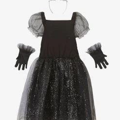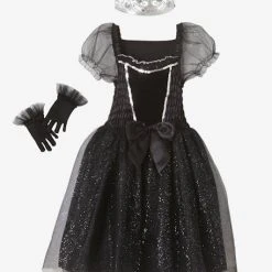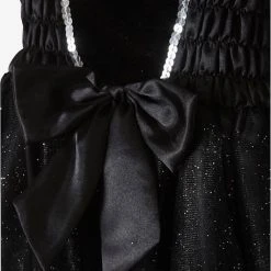 Pour les petites filles qui rêvent de donner la réplique à leurs acteurs préférés, voici un déguisement spécialement imaginé pour les étoiles montantes du cinéma ! Robe ornée de velours, sequins, satin et tulle, gants noirs et diadème, c’est parti pour la montée des marches et les séances d’autographes !