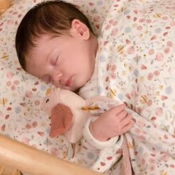 Doudou Carré Oiseau – Flowers & Butterflies – LITTLE DUTCH Rose Pâle – Little Dutch