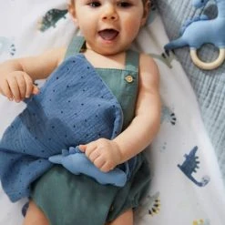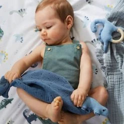 - Doudou mouchoir avec 1 face en gaze de coton et 1 face en jersey. 1 dinosaure en volume sur le dessus.