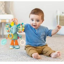 Avec ses couleurs stimulantes et ses chouettes activités, l’éléphant d’activités Infantino est idéal pour amuser bébé ! Spécialement étudié pour l’éveiller, votre enfant pourra s’amuser à le toucher, le secouer, le mâchouiller mais aussi le câliner.
