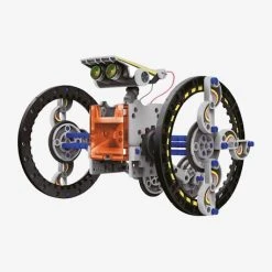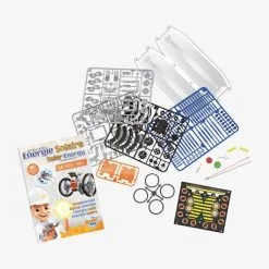 o Contient de nombreuses pièces permettant de construire 14 vĂ©hicules qui avancent grâce Ă l’Ă©nergie solaire (sans pile)