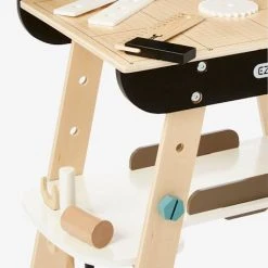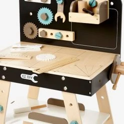 Pour nos apprentis bricoleurs, ce magnifique Ă©tabli en bois au design et coloris tendance possède 33 accessoires pour visser, mesurer, boulonner… Quand tous les accessoires sont rangĂ©s, il peut Ă©galement se transformer en un petit bureau très sympa oĂą votre enfant pourra travailler tranquillement.