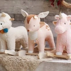 Faon à bascule en bois FSC®. Corps en tissu rembourré.
