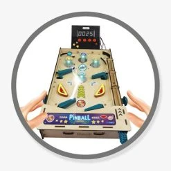 Avec le tournevis inclus, votre enfant assemble les Ă©lĂ©ments pour construire son flipper. Il branche les composants avec les connecteurs sans soudure : bumpers, diodes lumineuses et tableau des scores. Il peut mĂŞme personnaliser son flipper avec les autocollants.Â