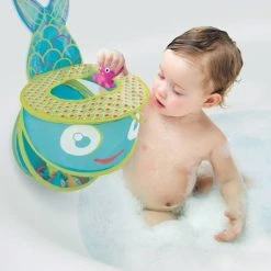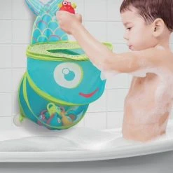 Avec ses couleurs joyeuses et ses motifs « petits poissons », ce grand filet de bain sĂ©duira autant les enfants que les parents. Solide et de grande taille sans ĂŞtre trop encombrant, le filet de bain vous permettra de ranger en un clin d’Ĺ“il tous les jouets du bain, mĂŞme les plus lourds ! Pratique et stable, il se fixe au carrelage ou Ă la paroi de la baignoire Ă l’aide de ses trois ventouses. L’adhĂ©rence est assurĂ©e mĂŞme quand le filet est bien rempli.