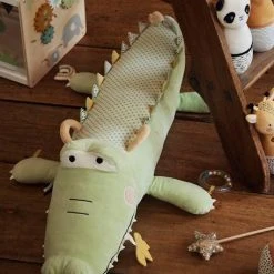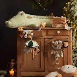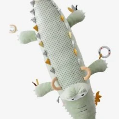 Un adorable crocodile transporte avec lui une ribambelle de jouets pour Ă©veiller et Ă©merveiller les petits ! En velours tout doux, il aide au dĂ©veloppement de tous les sens.Â