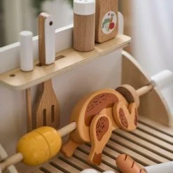 - Livré avec : 1 poulet (détachable en 5 parties), 1 poisson, 1 saucisse, 1 pomme de terre (détachable en 2 parties), 1 champignon, 1 salière, 2 tubes de sauce, 1 pince, 1 spatule, 2 pics à brochette et 1 broche.