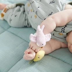 Un jouet d’Ă©veil idĂ©al pour le 1er âge ! Quand bĂ©bĂ© gigote ses pieds et ses mains, ces bracelets pieds et mains Ă©mettent des petits sons de hochet !