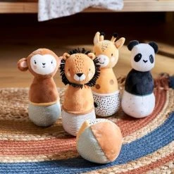 - 4 quilles animaux :Â 1 lion, 1 panda, 1 girafe, 1 singe