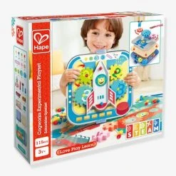DĂ©couvrez le jeu d’engrenages de Hape, un jeu Ă©ducatif original pour les enfants Ă partir de 3 ans, qui vont se familiariser avec les notions de force, de vitesse, de connectivitĂ© et d’ingĂ©nierie. Après avoir choisi un dĂ©cor, votre enfant s’amusera Ă positionner les roues de sorte qu’elles tournent toutes ensemble. En tournant une pièce, il dĂ©clenchera une rĂ©action en chaĂ®ne spectaculaire. Un jeu original et ludique qui fait appel Ă Â la crĂ©ativitĂ© et l’imagination.