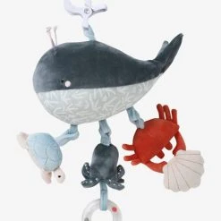 Notre jolie baleine offre le plein de douceur à bébé ! Sa pince vous permet de l’accrocher où bon vous semble pour stimuler les sens de bébé. Vue, ouïe, toucher… votre enfant fera de tendres découvertes grâce aux 3 jouets suspendus et détachables.