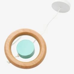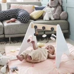 Jouets d’Ă©veil pour portique en bois.