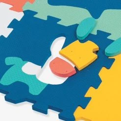 En grandissant, les enfants s’amuseront à détacher les dalles du tapis, à enlever les petites dalles au centre des plus grandes et à reconstruire le puzzle. Détachables, les 3 formes géométriques et les 8 animaux offrent également une activité d’encastrement. L’occasion de réviser sa géométrie, le nom des animaux et de développer sa dextérité !