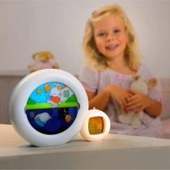 Le Kid’Sleep Moon est un indicateur de lever tout-en-un qui aide l’enfant à savoir si c’est encore l’heure de dormir ou si c’est l’heure de se lever. Si la figurine est illuminée en position de sommeil avec la lune, c’est encore l’heure de dormir. Au matin, lorsque la lune commence à se coucher (durée ajustable), l’enfant sait que c’est bientôt l’heure de se lever ! A l’heure réglée par les parents, le soleil se lève et la figurine passe en position réveillée, l’enfant sait qu’il peut se lever !