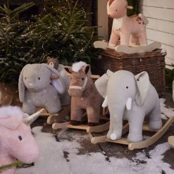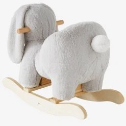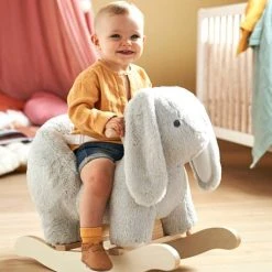 Lapin à bascule bébé avec structure en bois FSC®. Corps en tissu rembourré.