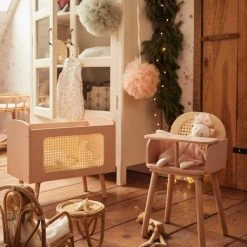 Un lit de poupée dans l’air du temps avec sa jolie couleur rose et son cannage. De quoi créer un joli nid à sa poupée tout en apportant un style romantique à la déco de chambre !