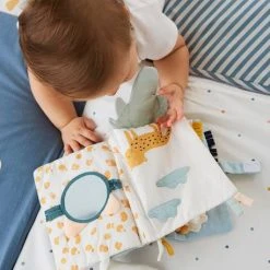 Ce chouette livre d’Ă©veil a tout pour plaire Ă votre enfant ! Des couleurs attrayantes, des illustrations sympa et diffĂ©rentes activitĂ©s prĂŞtes Ă Ă©merveiller les sens de bĂ©bĂ© ! 8 pages Ă observer, Ă tripoter, Ă mordiller pour Ă©veiller les tout-petits !