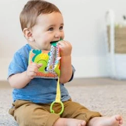 SpĂ©cialement Ă©tudiĂ© pour stimuler les sens de bĂ©bĂ© et l’accompagner dans son Ă©veil, le livre en tissu Infantino contient du papier crissant, un couineur et un anneau de dentition texturĂ©, qui soulagera les gencives lors des poussĂ©es dentaires.