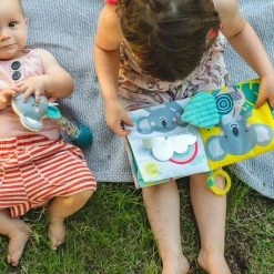 Un adorable livre en tissu à suspendre à la poussette ou au cosy qui permet à votre bébé de faire le plein de découvertes. A chaque page il se familiarise avec des matières et textures variées à toucher et à attraper.