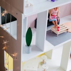 Une superbe maison au design moderne et aux dimensions adaptées aux poupées mannequin. Chambre, salon, salle à manger, votre enfant passera des heures à inventer une petite vie à ses poupées, grâce aux nombreux accessoires qui meublent la demeure.