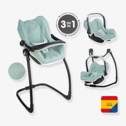 Ce produit 3 en 1 a tout pour satisfaire votre enfant ! Avec sa chaise haute avec tablette, sa balancelle et son siège auto, tout le nĂ©cessaire est prĂ©sent pour prendre soin de son bĂ©bĂ© comme une vĂ©ritable maman ou un vĂ©ritable papa ! Du repas Ă la sieste, de nombreuses possibilitĂ©s de jeu l’attendent ! Votre enfant passera des heures entières Ă chouchouter son poupon !