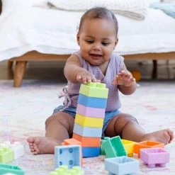 BĂ©bĂ© va adorer ces briques souples de diffĂ©rentes couleurs et tailles. Faciles Ă manipuler avec ses petites mains, d’une texture agrĂ©able en silicone, votre enfant va rĂ©aliser ses premières constructions tout en douceur.