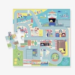 Un circuit de voiture géant à reconstituer à l’aide des 36 pièces de puzzle ainsi que 4 voiture en bois pour s’amuser.