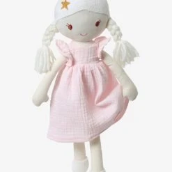 - Poupée en coton coiffée de 2 tresses et une étoile dans les cheveux