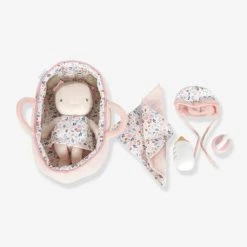 - Set complet comprenant : la poupée bébé Rosa, un biberon, une tétine sucette, un bonnet, un couffin et une couverture
