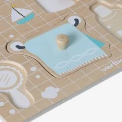 De gros boutons faciles Ă attraper par les petites mains, des contours dessinĂ©s pour faciliter le jeu ; ce puzzle spĂ©cialement pensĂ© pour les plus petits possède 10 formes d’Ă©lĂ©ments de la salle de bain Ă encastrer, pour amuser les enfants et les aider Ă dĂ©velopper leur motricitĂ© fine.Â