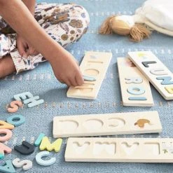 Un joli puzzle éducatif qui aidera votre enfant dans l’apprentissage de la lecture. Il se compose de 6 plaques recto verso avec une image et l’emplacement pour encastrer les lettres et ainsi reformer le mot correspondant !
