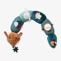 • 1 boudin coton avec miroir sur le dessus avec 2 anneaux de dentition attachés par liens dont 1 avec billes colorées