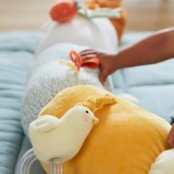 Une jolie poule transporte derrière elle de petits boudins colorĂ©s avec de chouettes activitĂ©s ! Miroir, anneau de dentition, rubans… bĂ©bĂ© va pouvoir stimuler ses sens en s’amusant !Â
