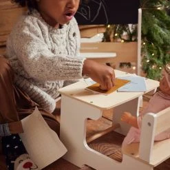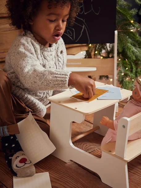 Du mobilier de classe pour jouer Ă la maĂ®tresse avec ses poupĂ©es ! Un set complet avec tableau, pupitre, cahiers d’exercices, emploi du temps et bulletin de notes que votre enfant pourra noter grâce aux planches de stickers avec pastilles colorĂ©es (bleu pour très bien, rose pour bien, noir pour moins bien). Â