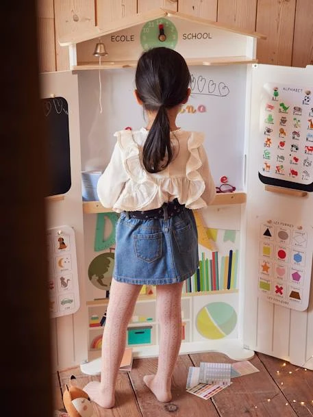 Jouer Ă la maĂ®tresse n’a jamais Ă©tĂ© aussi amusant avec cette salle de classe triptyque. Ouvrez les portes et dĂ©couvrez tout le nĂ©cessaire qui permettra aux enfants de prendre la place du maĂ®tre ou de l’Ă©lève ! Des accessoires d’Ă©colier (règle, Ă©querre, rapporteur…), des fiches d’apprentissages, des tableaux noirs… la plus chouette des Ă©coles se trouve Ă la maison !