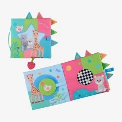 Un grand livre en tissu Ă l’effigie de Sophie la girafe et ses amis pour Ă©veiller tous les sens de bĂ©bĂ© !
